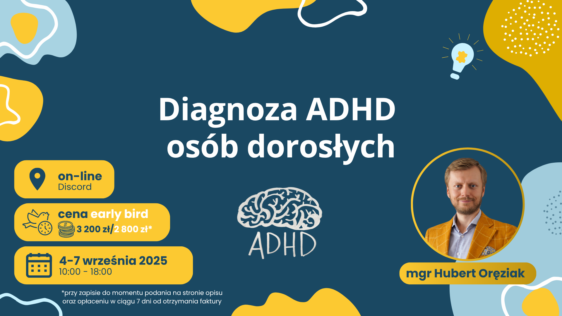 🧠 Diagnoza ADHD u osób dorosłych – to 4-dniowy warsztat praktyczny dla psychologów, psychiatrów i innych specjalistów